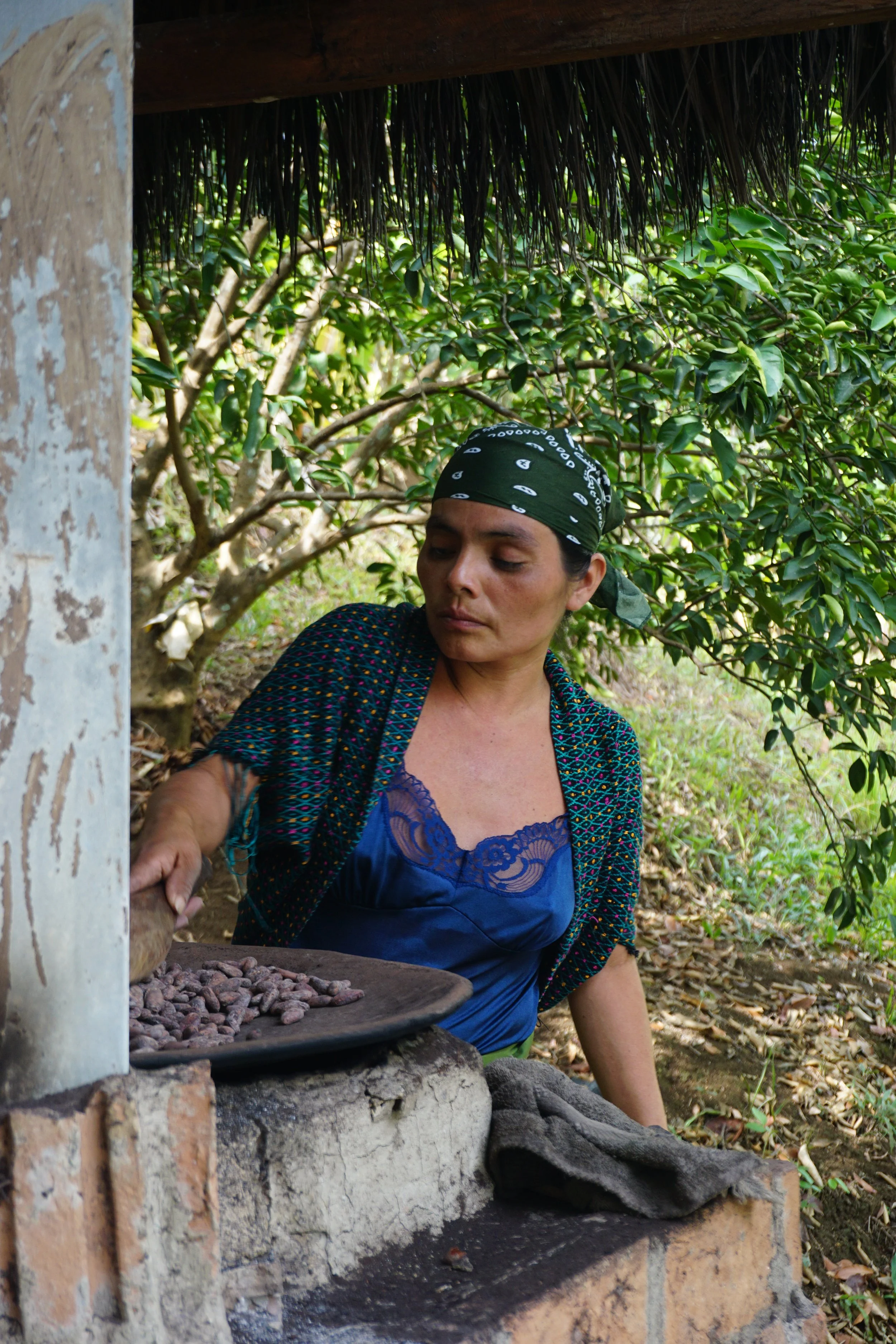 We also train and employ women in cacao processing (toasting and peeling), giving them an opportunity to earn income — often for the first time. These groups become spaces for connection, support, and shared learning.